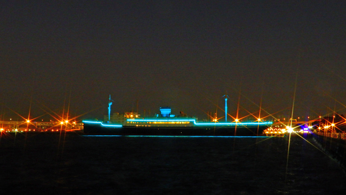 山下公園に停泊している氷川丸が、年末のイルミネーションできれいに照らされました。