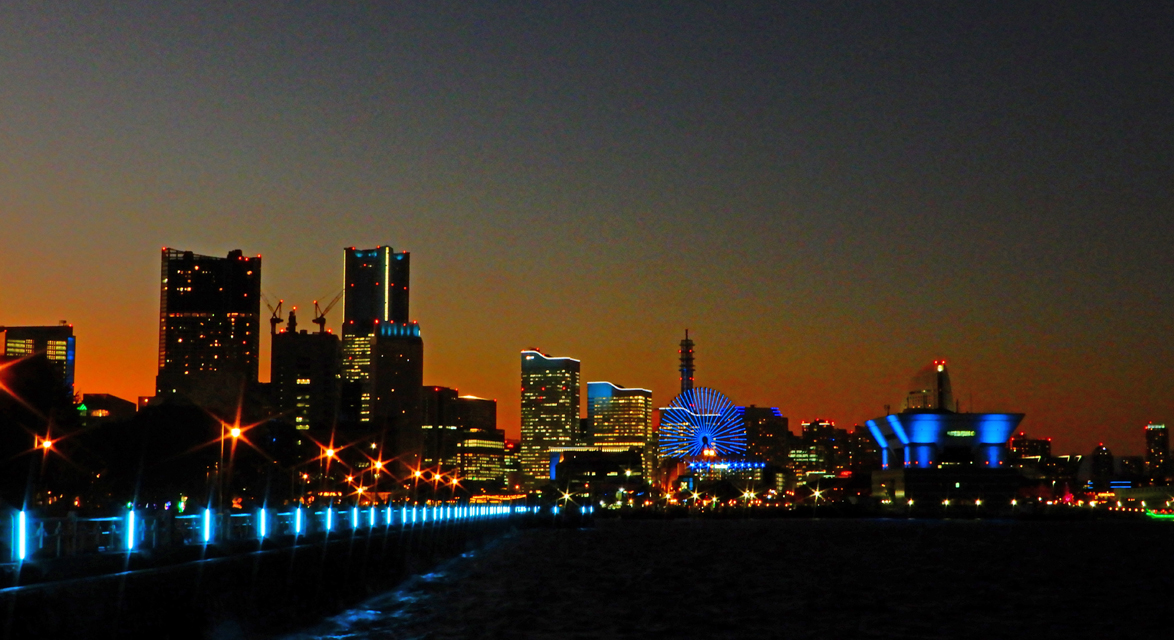 山下公園からの大桟橋、みなとみらい方面。